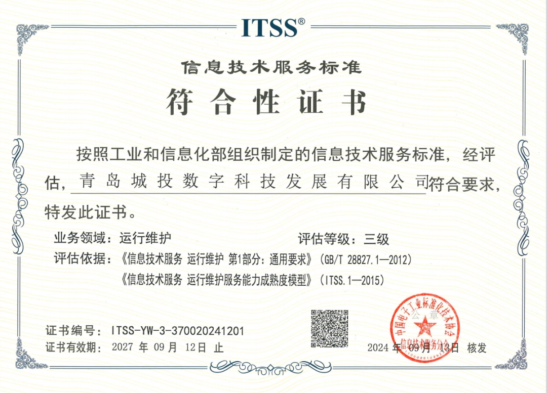 与此同时,数科公司获得的另一项行业体系认证ITSS(Information Technology Service Standards,信息技术服务标准),是我国信息技术服务业的首个国家标准体系,是衡量企业信息技术服务能力和水平的重要标尺。获得该项认证代表半岛线上官网_半岛online(中国)体育数科在信息技术服务的设计、开发、实施、运维及持续改进等全生命周期管理上,均达到了国家标准化要求的高阶水平,能够为客户提供更加专业化、标准化、高质量的信息技术服务解决方案。