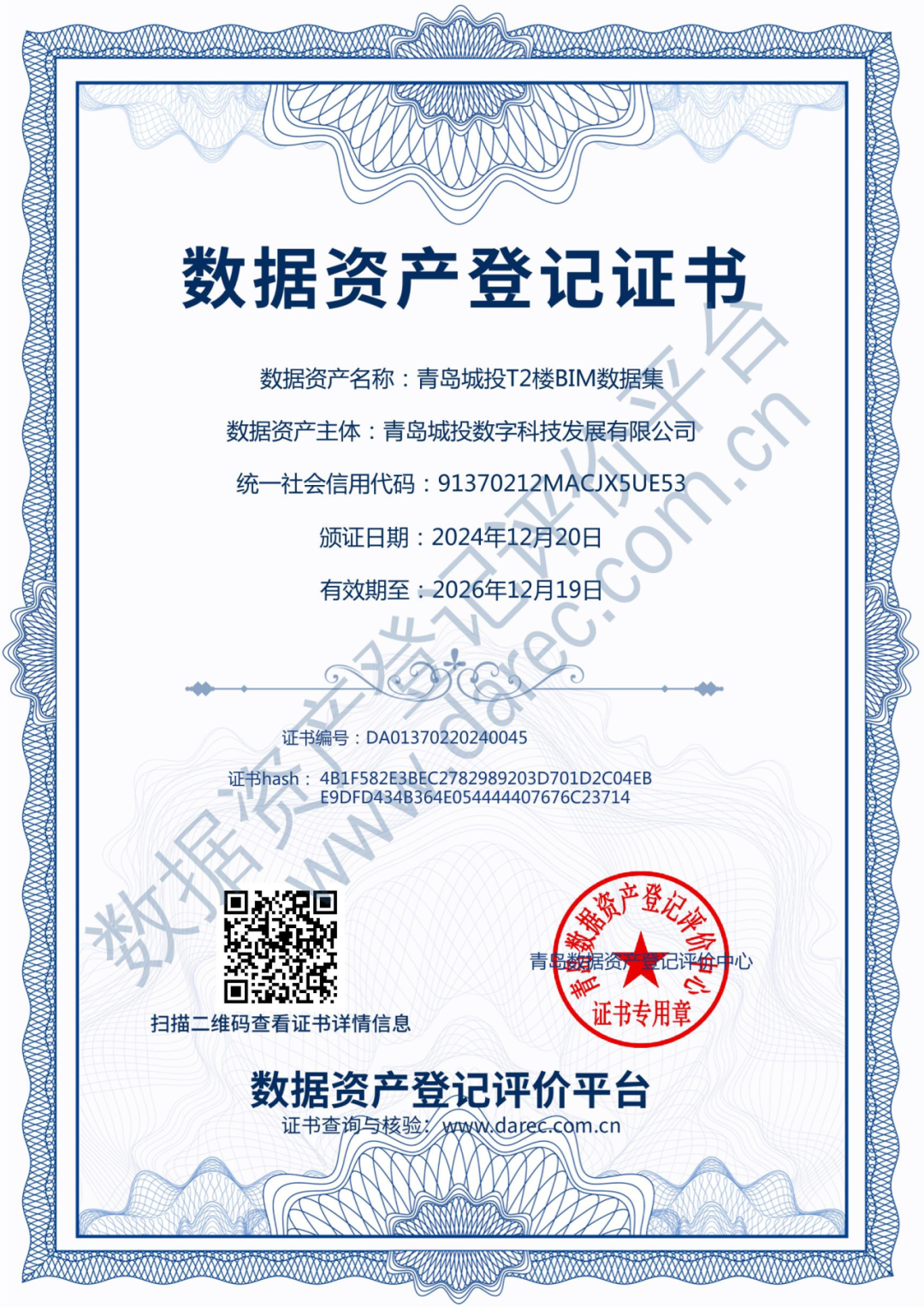 12月21日,青岛半岛线上官网_半岛online(中国)体育集团旗下数科公司将数据资产计入公司财务报表,圆满完成了“青岛半岛线上官网_半岛online(中国)体育T2楼BIM数据集”数据资产入表工作,成为青岛市首例实现BIM领域数据资产入表的成功案例,为后续数据资产业务拓展打下坚实基础。