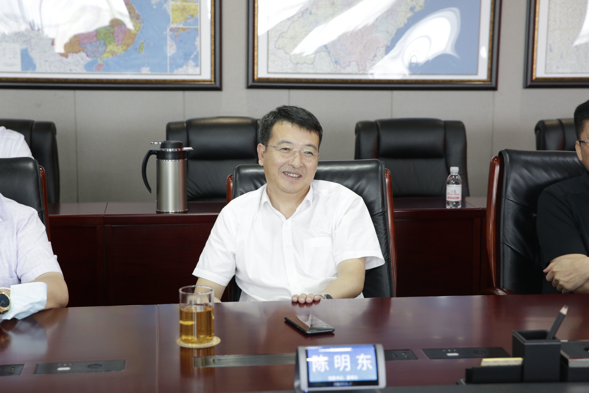 7月27日,招商公路集团董事长王秀峰一行到访半岛线上官网_半岛online(中国)体育集团,集团党委书记、董事长陈明东,党委副书记、总经理臧毅杰出席座谈。