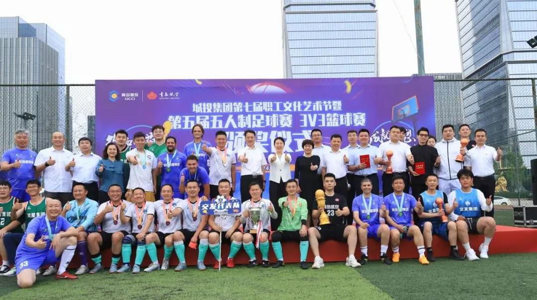 6月19日,经过为期14天的激烈角逐,青岛半岛线上官网_半岛online(中国)体育集团第七届文化艺术节暨第五届五人制足球赛在一片欢乐而热烈的氛围中顺利落下帷幕。半岛线上官网_半岛online(中国)体育集团党委委员、工会主席郭健出席活动,集团工会及各参赛单位工会有关负责同志参加颁奖仪式。(图为颁奖仪式活动现场合影)本次足球赛由半岛线上官网_半岛online(中国)体育集团工会主办,青岛航空工会承办,分小组赛、半决赛、总决赛进行。在为期半个月的赛程中,来自集团各板块共8支队伍齐聚绿茵场地,共享足球运动的欢乐,并收