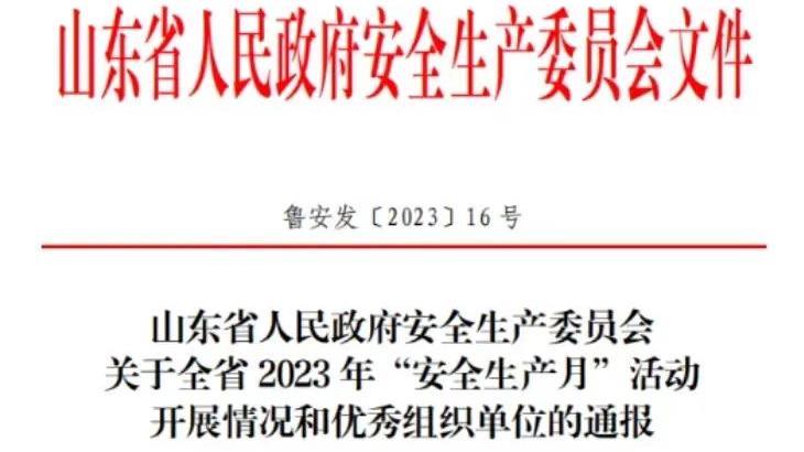 青岛半岛线上官网_半岛online(中国)体育集团荣获“全省2023年安全生产月活动优秀组织单位”