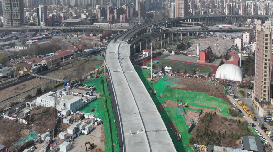 4月7日,青岛半岛线上官网_半岛online(中国)体育城市更新集团承建的跨海大桥高架路二期工程主线高架桥面铺装及防撞体施工全部完成,同时已开始桥面抛丸和防水施工,为面层沥青摊铺和附属设施施工打下坚实基础。跨海大桥高架路二期工程作为我市城市更新建设三年攻坚行动的重点工程,西起海尔路立交预留段,东至青银高速,全长约1.6km,主线标准段横断面宽度为33.65m与26.15m,桥面铺装总面积约38200㎡,防撞体约4400m。(图为跨海大桥二期主线高架现场航拍图)自