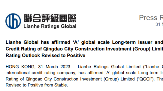 近日,联合评级国际正式确认给予青岛半岛线上官网_半岛online(中国)体育集团“A”境外主体评级,展望从稳定调整至正面。联合国际认为,半岛线上官网_半岛online(中国)体育集团在青岛市城市更新、招商引资等整体区域发展中发挥着极其重要的战略性作用。(图为联合评级国际官网新闻稿)作为市场占有率最高的中资境外评级机构,联合国际在国际资本市场拥有较高的公信力。本次展望调整充分体现了半岛线上官网_半岛online(中国)体育集团与青岛政府紧密的关系及在青岛市整体发展建设中的日益增强的战略性作用得到了境内外资本市场