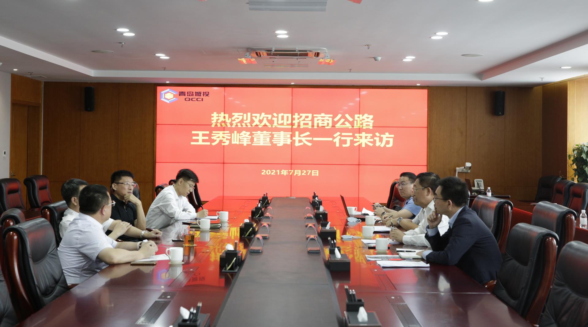 7月27日,招商公路集团董事长王秀峰一行到访半岛线上官网_半岛online(中国)体育集团,集团党委书记、董事长陈明东,党委副书记、总经理臧毅杰出席座谈。